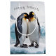 Two penguins stand closely together on a small ice floe surrounded by icy waters and distant glaciers for birthday.