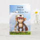 Make his birthday a home run with this fully personalised baseball-themed card! Featuring a playful monkey holding a bat and glove, this fun design is perfect for a young baseball fan. Customise both the front with his name and age, creating a unique keepsake just for him. A fantastic way to celebrate a sports-loving boy of any age with a card as special as he is!