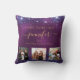 A gift from friends for a woman's 21st birthday, celebrating her life with 3 of your photos of her, her friends, family, interest or pets. Personalise and add her name, age 21 and your names. Golden coloured letters. A chic feminine purple background colour. The purple colour is uneven. Decorated with blue faux glitter dust. Her name is written with a modern hand lettered style script with swashes.