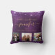 A gift from friends for a woman's 21st birthday, celebrating her life with 3 of your photos of her, her friends, family, interest or pets. Personalise and add her name, age 21 and your names. Golden coloured letters. A chic feminine purple background colour. The purple colour is uneven. Decorated with faux glitter dust. Her name is written with a modern hand lettered style script with swashes.