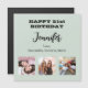 A card for a 21st (or any age) birthday, celebrating her life with 3 of your photos of friends, family, interest or pets. Personalise and add a name, age 21 and your names. Black coloured letters. A sage green coloured background. The name is written with a modern hand lettered style script