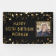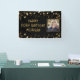 Create your own personalized, custom color birthday banner sign featuring one photo, your custom text in your choice of font styles and color (the sample shows HAPPY # BIRTHDAY NAME in gold) accented with gold stars against an editable black background color you can change to coordinate with party theme colors. OPTIONS: The sample is shown on the 2.5x4-foot indoor banner--other sizes and outdoor options are on the ordering page. ASSISTANCE: For help with design modification or personalization, color change, resizing or transferring the design to another product, contact the designer BEFORE ORDERING via the Zazzle Chat MESSAGE tab below or email makeitaboutyoustore@gmail.com.