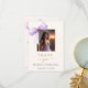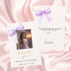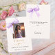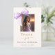 A modern and elegant birthday "all ages" thank you card. A soft ivory colored background, decorated with a large lavender colored bow. Black and golden letters. On the front the text: Thank You, name, and a date. Add a photo.