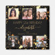 For a woman's 21st (or any age) birthday, celebrating her life with a collage of 6 of your high quality photos of her, her friends, family, interest or pets. Personalize and add her name, age 21 and your names. Golden text. A chic, classic black background color. Her name is written with a modern hand lettered style script with swashes. Decorated with faux gold stars dripping.