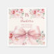 A cream, beige background colour. Decorated with a large pink bow and pink flowers. Personalise and add the name and date.
