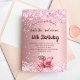 A blush pink gradient background decorated with faux sparkles, confetti and a romantic vintage carriage. Personalise and add her name, age, party details.