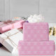 Elegant, classic, trendy party wrapping paper sheets. A pastel pink background, white text.