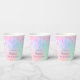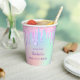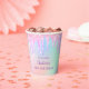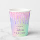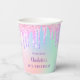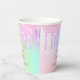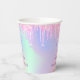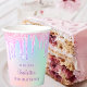For a girly 10th (or any age) birthday party. A holographic, rainbow coloured background in pink, purple, rose gold and mint green decorated with purple and pink faux glitter drips. Personalise and add a date name and age 21. Purple letters.