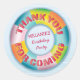 A colourful inner tube pool float is stenciled with"Thank You for Coming" to a birthday celebration pool party - perfect for placing on favours or goodie bags.