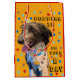 So very happy with the quality of this bag! The thickness of the paper along with the glossy finish I just love it! Can’t wait to give our pup his gifts in this awesome custom gift bag! The printing came out amazing! The black crisp clear printing on the white bag looks amazing! Very pleased with this purchase!