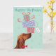 Happy birthday greetings with this cute design featuring a cute Irish Setter balancing a stack of birthday presents on its nose. Text can be easily changed; just click on customise button.