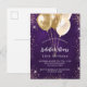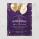 For an elegant 18th birthday party. A trendy deep purple background. The purple color is uneven. Decorated with faux gold glitter, sparkles and balloons. Personalize and add a name, age and party details. The name is written with a hand lettered style script