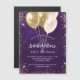 Birthday purple gold glitter balloons luxury magnetic invitation
