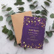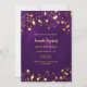 A modern, stylish and glamourous invitation for a 40th (or any age) birthday party. A deep purple coloured background with faux gold stars. The purple colour is uneven. The name is written with a modern hand lettered style script. Personalise and add your party details.