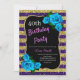Birthday Purple Gold Stripes Glitter Blue Roses Invitation