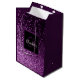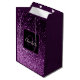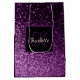 For a girly and glamorous 21st (or any age) birthday. Deep purple and pink faux glitter gradient. For teen girls and women. A black and purple frame with space for your name and monogram letter. The name is written in rose gold with a modern hand lettered style script. Monogram letter in purple.