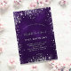 A modern, stylish and glamourous invitation for a 21st (or any age) birthday party. A deep purple coloured background with faux silver glitter dust. The purple colour is uneven. The name is written with a modern hand lettered style script. Personalise and add your party details.