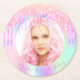 Birthday rainbow glitter drips custom photo pink round paper coaster