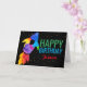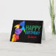 Birthday Rainbow Watercolor Rocket Outer Space Card