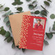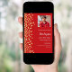 A modern, elegant and invitation. A red background decorated with faux gold confetti. Personalise and add photo, a name and party details. White text.