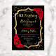 Birthday & Retirement Party Invitation. Elegant design in black, gold and red. Features stylish script font, faux glitter gold and confetti. Perfect for a glam birthday & retirement joint celebration. Customise with your own details.