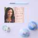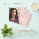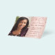 On front: Add a vertical size photo. An elegant rose gold, blush gradient background colour, decorated with stars. Personalise and add a name and details.
