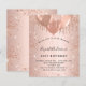 For an elegant 21st (or any age) birthday. A rose gold background. Decorated with rose drips, paint dripping look and balloons. Personalise and add a name, age 21 and party details. The name is written with a hand lettered style script