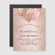 A magnet invitation for an elegant 21st (or any age) birthday. A rose gold faux metallic looking background. Decorated with rose gold, pink faux glitter drips, paint dripping look and balloons. Personalise and add a name, age 21 and party details. The name is written with a hand lettered style script.