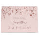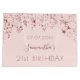 A gift bag for a 21st (or any age) birthday party. A chic girly and feminine blush pink coloured background. Decorated with rose gold dripping stars. Personalise and add a date, name and age 21. The name is written with a modern hand lettered style script.