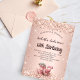 A rose gold gradient background decorated with faux sparkles, confetti and a romantic vintage carriage. Personalise and add her name, age, party details.