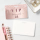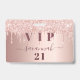 A modern, stylish and glamourous badge for a 21st (or any age) birthday party. A rose gold background with drip, paint drip look. The name is written with a modern dark rose gold coloured hand lettered style script with swashes. With the text: VIP Number 21 is written in a golden colour. To keep the swashes only delete the sample name, leave the spaces or emoji's in front and after the name.