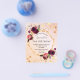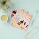 Back: Rose gold, blush pink gradient coloured background and golden stars.