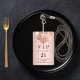 A modern, stylish and glamourous badge for a 21st (or any age) birthday party. A rose gold gradient background with faux glitter drips, paint dripping look. With the text: VIP. Personalise and add name, age, address/date. The name is written with a modern dark rose gold coloured hand lettered style script with swashes.