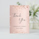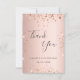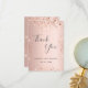 A thank you card for a 50th (or any age) birthday. A rose gold faux metallic looking background, decorated with faux glitter dust. On front, a large hand lettered script and the text: Thank You, your text, title and a date.