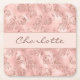 Birthday rose gold glitter pink florals monogram square paper coaster