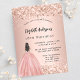 A modern, stylish and glamourous invitation for a 18th (or any age) birthday party. A rose gold background with faux gold glitter dust, a girl wearing a ball gown. The name is written with a modern hand lettered style script. Personalise and add your party details.