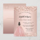 Birthday rose gold glitter princess dress invitation postcard