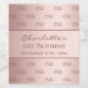 For a glamourous 21st (or any age) birthday party. A faux rose gold metallic looking background. Personalise and add your monogram letters, your name, age 21 and a date. Dark rose gold text. The name is written with a modern hand lettered style script. The monogram as a background pattern