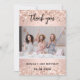 A rose gold gradient background decorated with faux glitter, sparkles. Personalise and add your photo and thank you note.