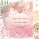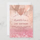 For an elegant 21st (or any age) birthday. A rose gold and pink gradient background. Decorated with rose gold, pink drips, paint dripping look and balloons. Personalise and add a name, age 21 and party details. The name is written with a hand lettered style script