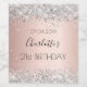For a girly and glamourous 21st (or any age) birthday party with the girls. A rose gold background with faux silver confetti. The text: The name is written with a modern hand lettered style script. Personalise and add a name, age 21 and a date.