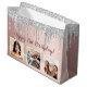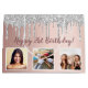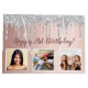 For a girly and glamourous 21st (or any age) birthday. A rose gold background with faux silver drips, paint dripping look. Personalise and add 3 photos and age 21.