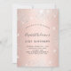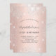 A modern, stylish and glamourous invitation for a 21st (or any age) birthday party. A faux rose gold metallic looking background with faux silver glitter dust. The name is written with a modern grey coloured hand lettered style script. Personalise and add your party details.