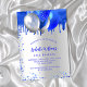 A 18th (or any age) birthday party invitation. On front: A faux silver background. Decorated with royal blue faux glitter drips, paint dripping look and balloons. Personalise and add a name and party details. The name is written with a hand lettered style script.