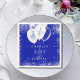 A napkin for a girly and glamourous 21st (or any age) birthday party. A royal blue background with elegant faux silver sparkles and white balloons. Personalise and add a name and age 21. White letters.