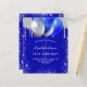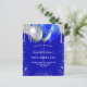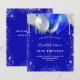 A royal blue background. Decorated with faux silver glitter drips paint dripping look, sparkles and balloons. Personalise and add a name and party details. The name is written with a hand lettered style script.