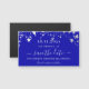 A trendy Save the Date magnet for a 30th (or any age) birthday party. A royal blue background with white stars. The text: Save the Date is written with a large trendy hand lettered style script. White letters.
