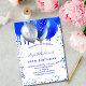 A white background. Decorated with royal blue and faux silver balloons. Personalise and add a name and party details. The name is written with a hand lettered style script.