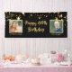 Celebrate two people who are turning the same age (any age) and welcome party guests with this black and gold star themed banner sign featuring a photo of each and personalised with their names and an editable title HAPPY #TH BIRTHDAY that you can insert the appropriate age for your occasion.