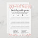 Birthday Scattergories editable game Card